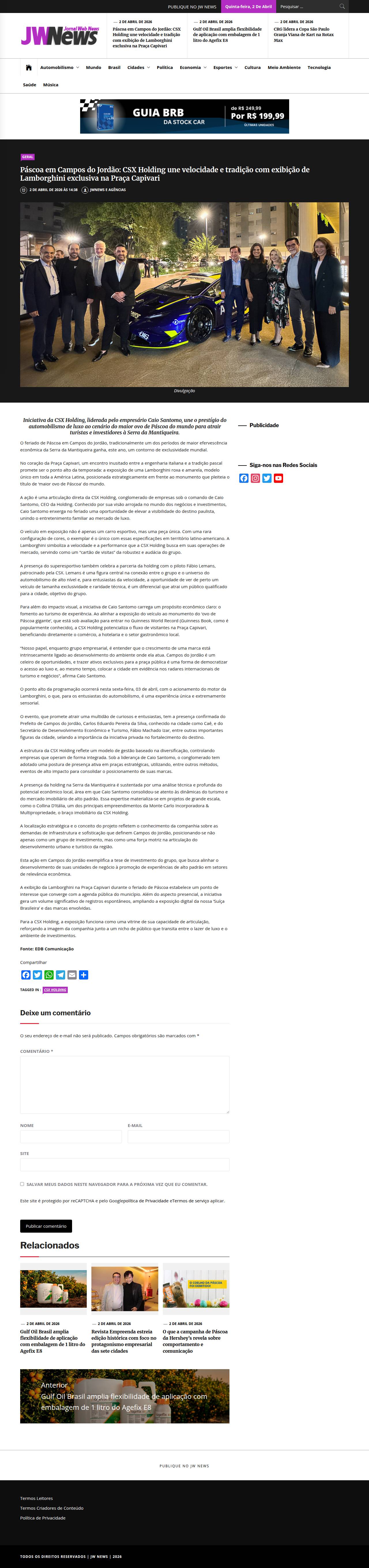https://jwnews.com.br/2026/04/02/pascoa-em-campos-do-jordao-csx-holding-une-velocidade-e-tradicao-com-exibicao-de-lamborghini-exclusiva-na-praca-capivari